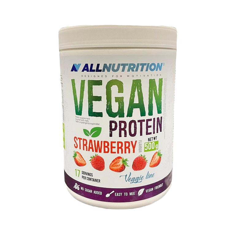 Allnutrition Vegan Protein in Strawberry flavor offers a delightful and nutritious way to meet your daily protein needs. Each serving provides a potent blend of 21 grams of protein, derived from a unique combination of soy protein isolate and six other plant proteins. This ensures that you receive up to 75% pure protein in every shake, making it ideal for vegans and vegetarians.