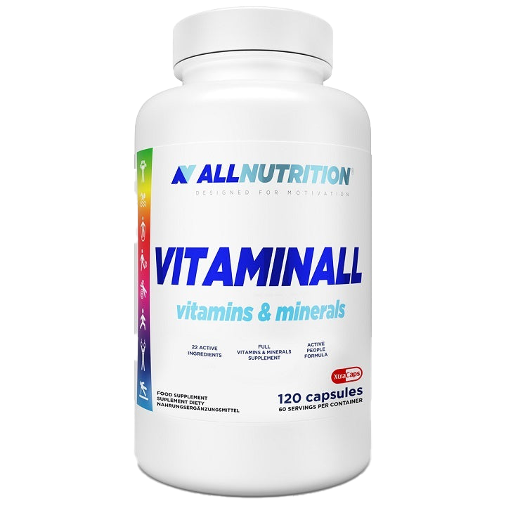 • Allnutrition Vitaminall XtraCaps offer a rich blend of essential vitamins and minerals designed to support your daily nutritional needs. This supplement is a potent solution for those looking to fill gaps in their diet, particularly for athletes and individuals engaged in strenuous activities. With the essential nutrients provided by Vitaminall, you can effectively combat vitamin and mineral deficiencies, which in turn improves recovery times post-workout and enhances your overall performance.