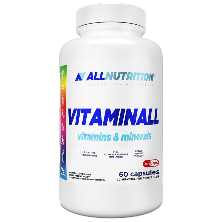 Allnutrition Vitaminall XtraCaps - a meticulous blend of vitamins and minerals designed to enhance your body's well-being. This powerful formulation is tailored to address common vitamin and mineral deficiencies, ensuring your body receives essential nutrients for optimal health.