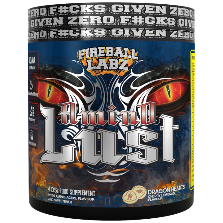 • Fuel your body and enhance your workout performance with Fireball Labz AminoLust 405g in Dragon Hearts (Cherry Lemonade). This premium amino acid supplement is designed to deliver the essential nutrients your body needs to recover and grow stronger after intense training sessions.
