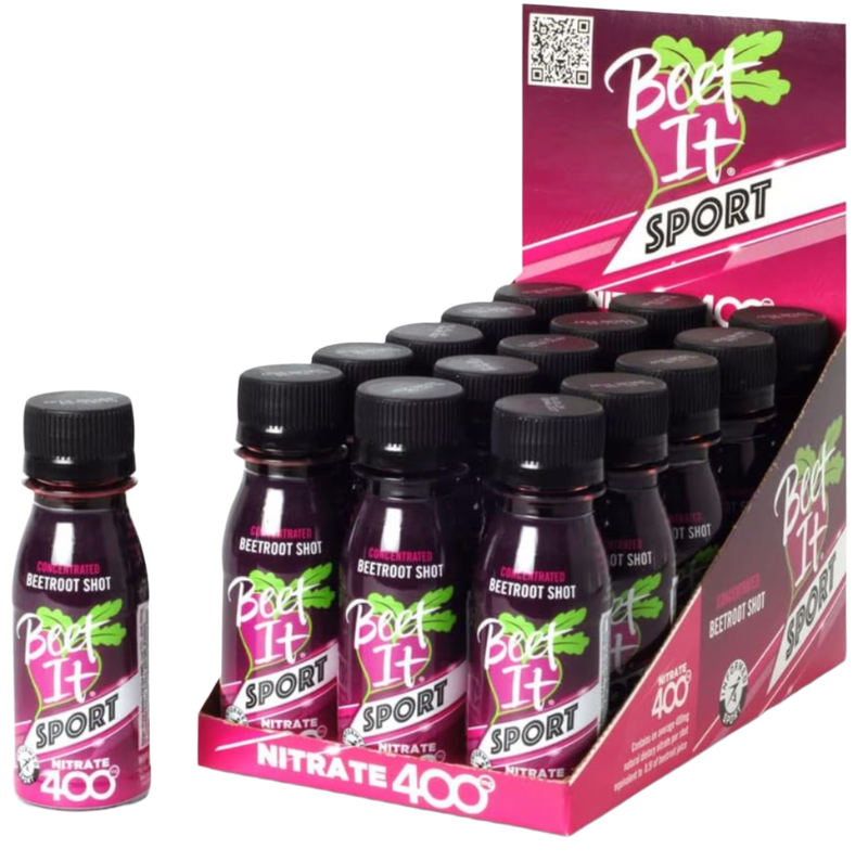 • Beet It Sport Nitrate 400 Shots are meticulously crafted for athletes aiming for peak performance through natural dietary enhancement. Each 70ml shot encompasses a potent 400mg of dietary nitrate, derived solely from concentrated beetroot juice, equivalent to the nutrients found in six whole beets. This high-nitrate formulation is considered the leading choice in dietary nitrate supplementation, backed by extensive research and the endorsement of elite athletes for over a decade.