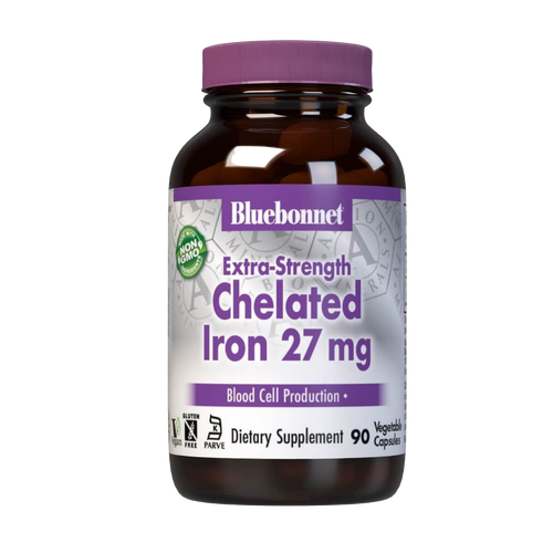 Bluebonnet Extra-Strength Chelated Iron 27mg 90 Vegetable Capsules