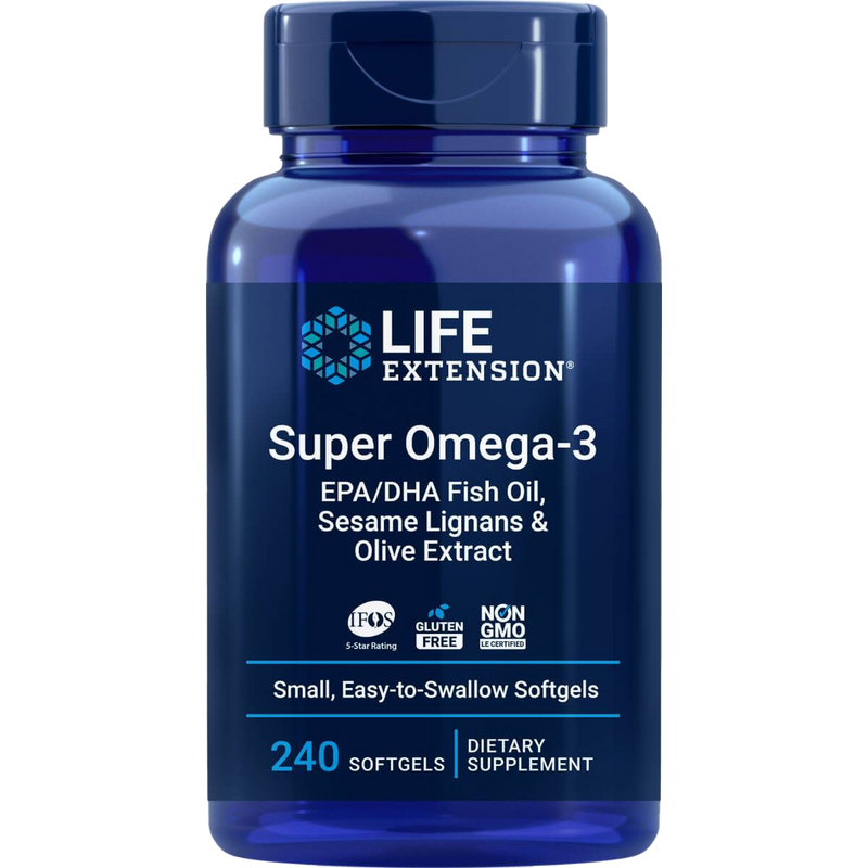 Life Extension Super Omega-3 EPA/DHA Fish Oil Sesame Lignans & Olive Extract 240 Softgels