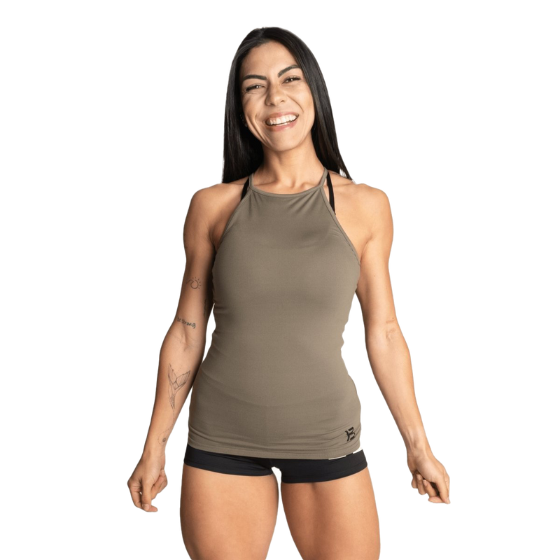 Elevate Your Performance with the Better Bodies Performance Halter in Wash Greenâa stylish and functional halter top designed specifically for women who demand both quality and comfort in their workouts. This halter top combines a chic feminine cut with a robust and flexible blend of 93% polyester and 7% elastane, ensuring a fit that moves with you.