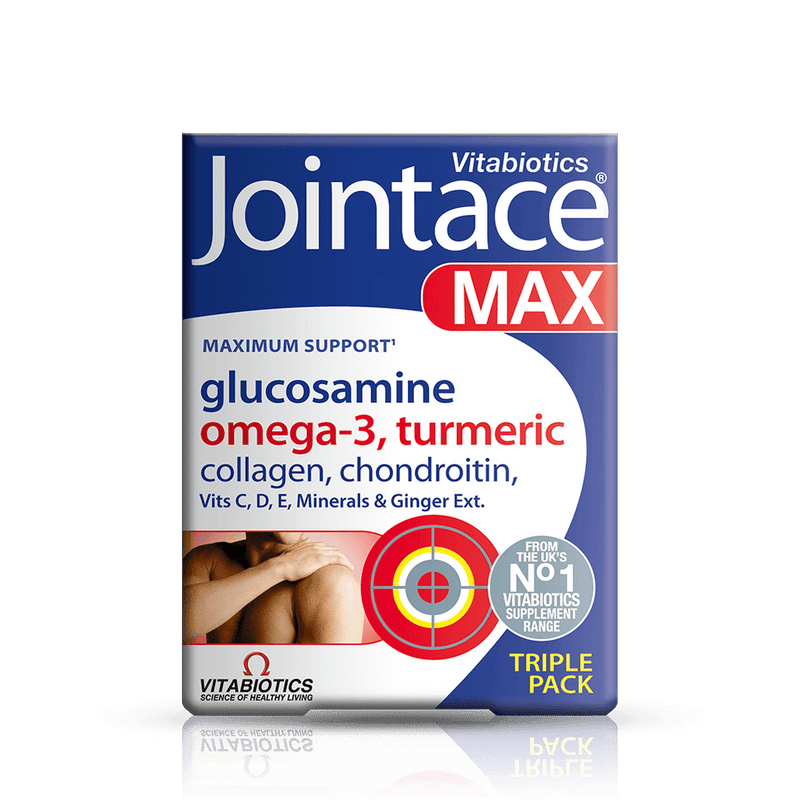 Experience superior joint care with Vitabiotics Jointace Max Triplesâthe ultimate formulation tailored for those who demand the best in cartilage and bone health support. This powerful triple pack combines essential nutrients: Collagen, Glucosamine, Chondroitin, and super-strength Omega-3 capsules, creating a unique synergy that promotes joint function and flexibility.