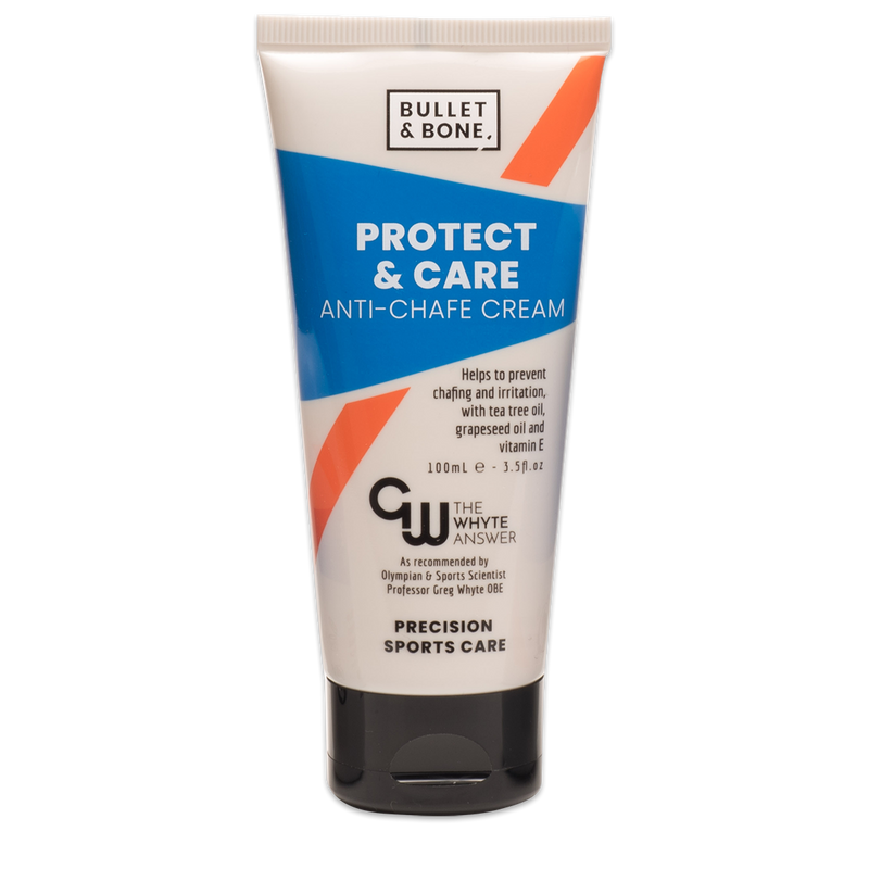 Bullet & Bone Protect & Care Anti-Chafe Cream - 100ml is your go-to sports nutrition essential designed specifically to combat skin irritation caused by chafing. This rich and luxurious cream forms a protective shield at points where your skin rubs against fabric, making it an indispensable companion for athletes and those with active lifestyles.