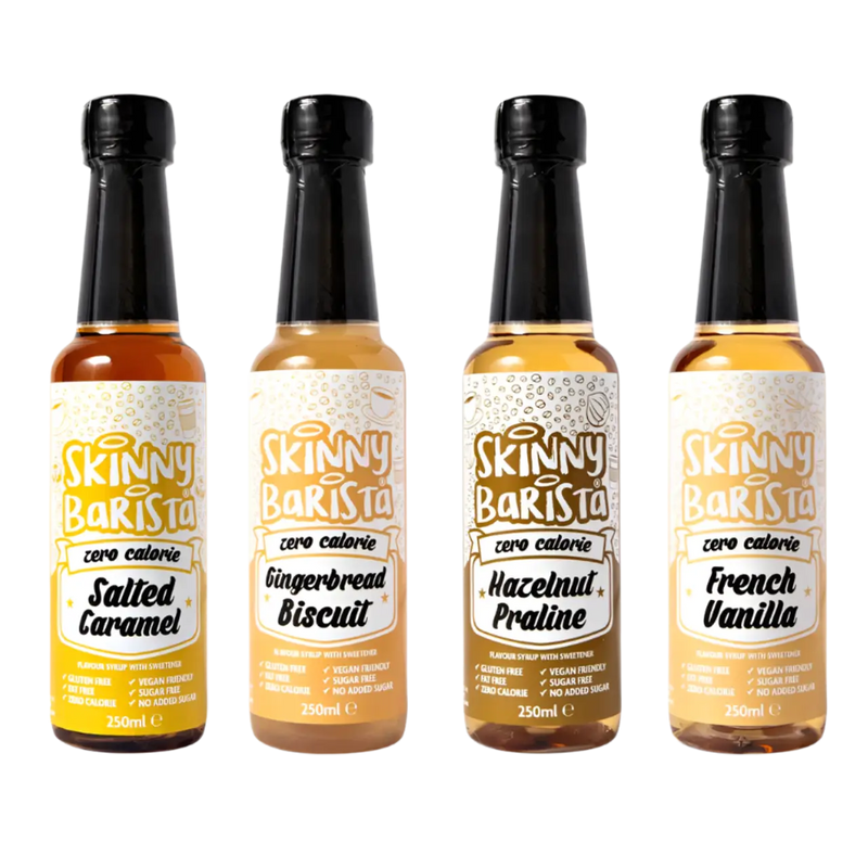 Elevate your beverages and desserts with The Skinny Food Co Sugar Free Coffee Syrup, offered in a generous 250ml bottle. This versatile syrup comes in four enticing flavours: French Vanilla, Gingerbread, Hazelnut, and Salted Caramel. Perfectly crafted for coffee aficionados, budding home baristas, and passionate dessert lovers alike, it adds a delightful hint of sweetness without compromising your dietary goals.