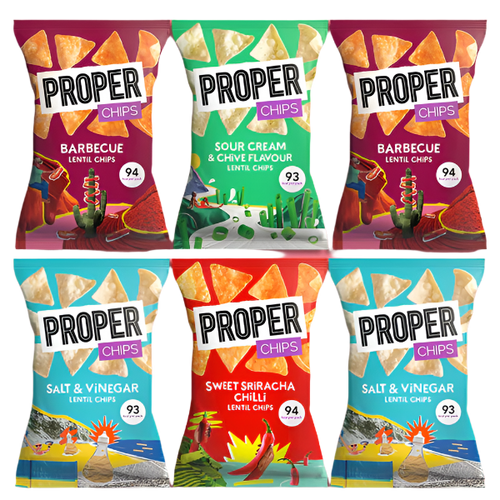 PROPERCHIPS Lentil Chips 24 x 20g | Barbecue, Sea Salt, Sweet Sriracha Chilli, Salt & Vinegar, Sour Cream & Chive