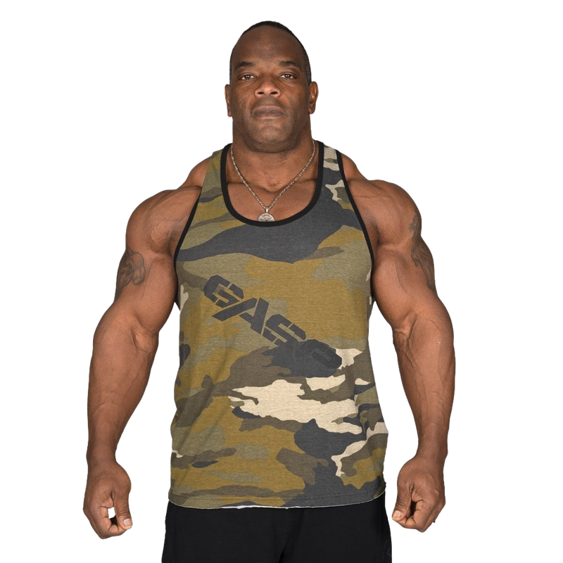 • Discover the perfect blend of style and functionality with the GASP Vintage T-Back - Green Camoprint. Made from 100% soft jersey cotton, this vest not only feels fantastic against your skin but is built to withstand the rigors of the gym. The bold print is tailored for those who have big physiques, ensuring you stand out from the crowd.