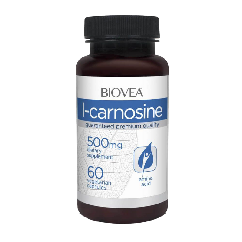 Biovea L-Carnosine 500mg 60 Vegetarian Capsules is a premium dietary supplement designed to support your longevity and overall vitality. This small yet powerful peptide combines the amino acids beta-alanine and histidine, which are naturally found in high concentrations in your skeletal and heart muscles, as well as your brain.