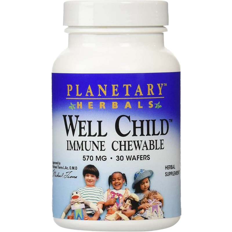 A strong immune system is crucial for children, particularly as they transition to school or daycare settings. Planetary Herbals Well Child Immune Chewable wafers are designed to bolster your childâs immune system with a thoughtfully crafted formula that includes key ingredients such as acerola cherryâa natural source of vitamin Câalongside echinacea and astragalus. These chewable wafers not only enhance immune defenses but also assist in building long-term resistance against common illnesses.