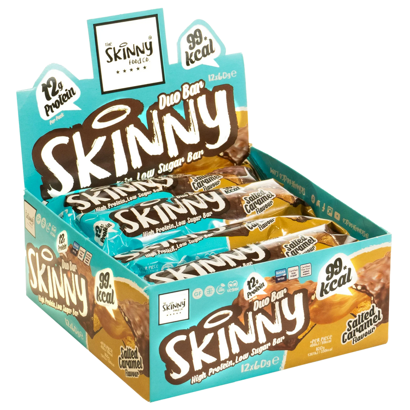 Crafted by The Skinny Food Co, a brand synonymous with healthier indulgences, this box of 12 offers a dependable source of portable nutrition. Stash them away and youâll always be prepared with a protein-rich treat at your fingertips whenever life gets hectic.