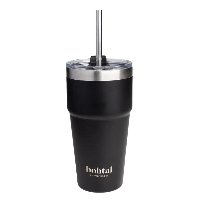 SmartShake Bohtal Double Insulated Travel Mug with Straw, Black 600ml for On-the-Go Hydration