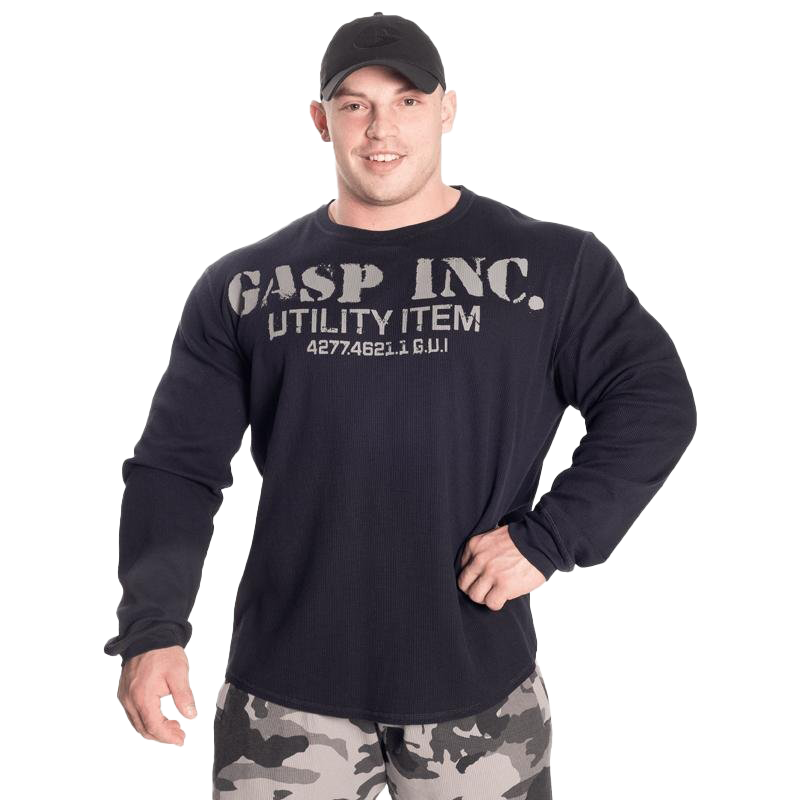Featuring the iconic GASP INC logo prominently displayed on the front and a subtle neck print on the back, this thermal sweater is as much about attitude as it is about performance. Make a statement both in and out of the gym.