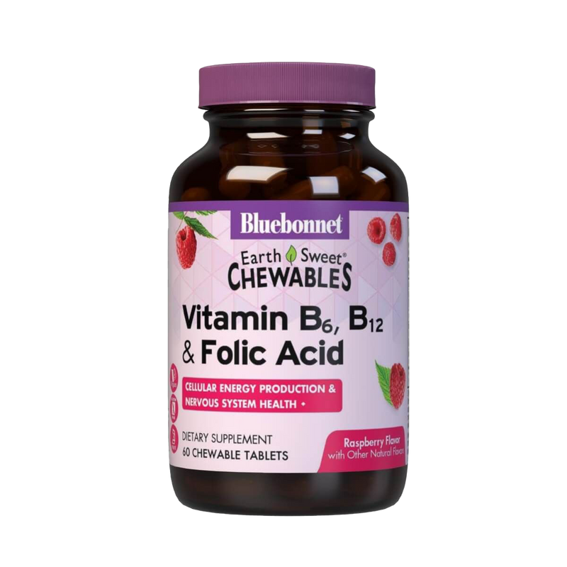 Bluebonnet Earthsweet Chewables Vitamin B6, B12 & Folic Acid 60 Raspberry Tablets