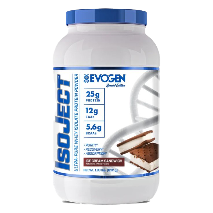 Introducing the Evogen IsoJect in the delightful Ice Cream Sandwich flavor. This premium whey protein isolate is expertly crafted to meet the nutritional needs of fitness enthusiasts and athletes alike. With every scoop delivering 25 grams of high-quality protein and only 110-120 calories, you can indulge in a delicious shake without worrying about your caloric intake.