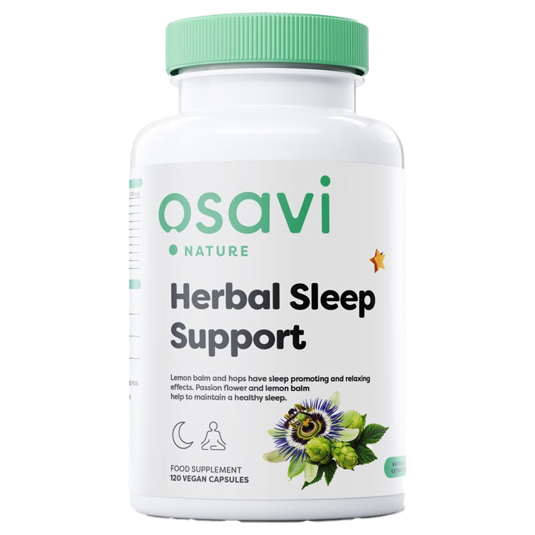 Experience the soothing power of nature with Osavi Herbal Sleep Support, specially formulated with a potent combination of herbal extracts including passion flower, lemon balm, and hops. This food supplement in easy-to-swallow capsules is designed to foster relaxation and ensure a peaceful night’s sleep.